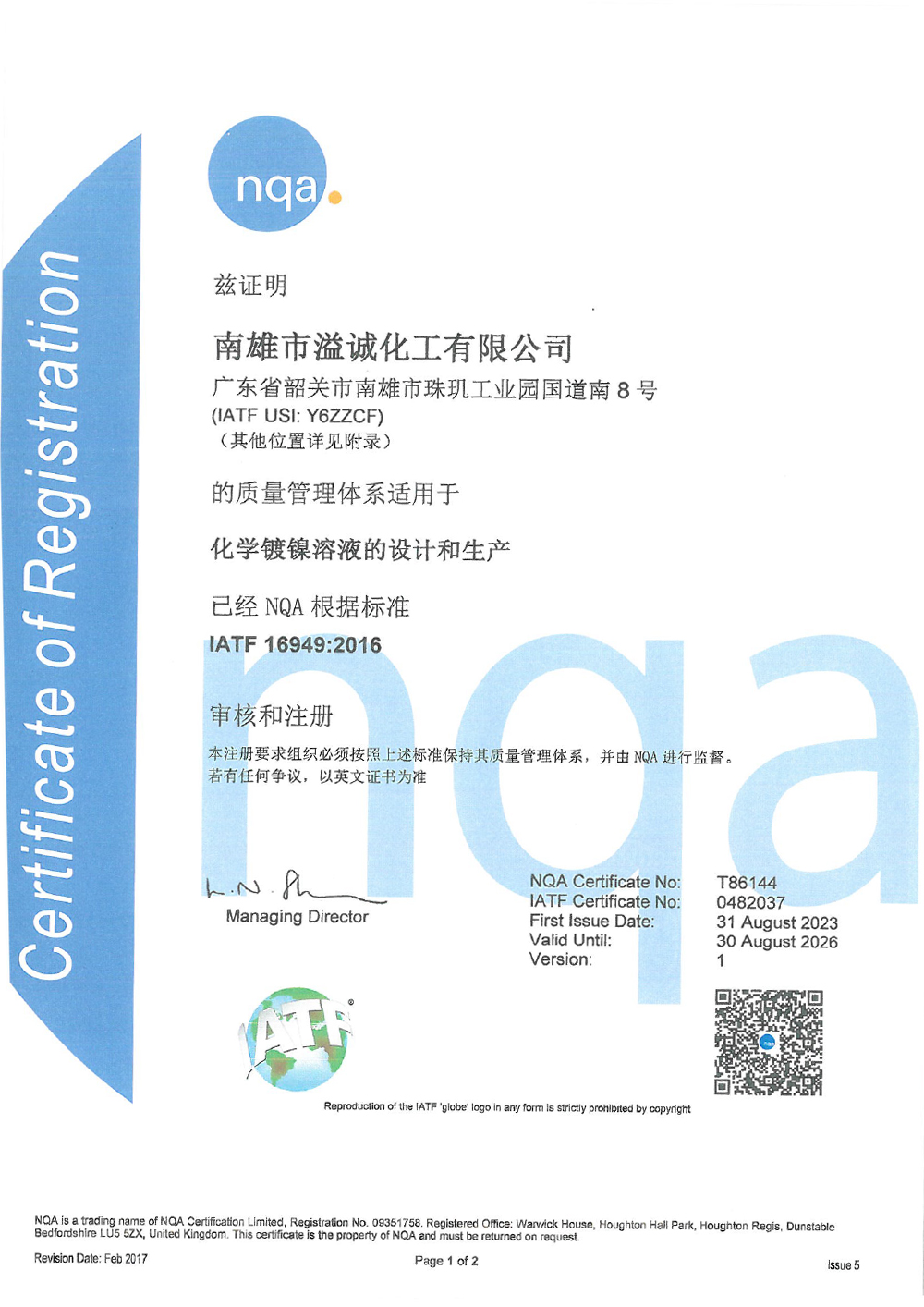 并获得国家高新企业认证以及ISO 9001、IATF 16949、ISO 14001等体系认证”。