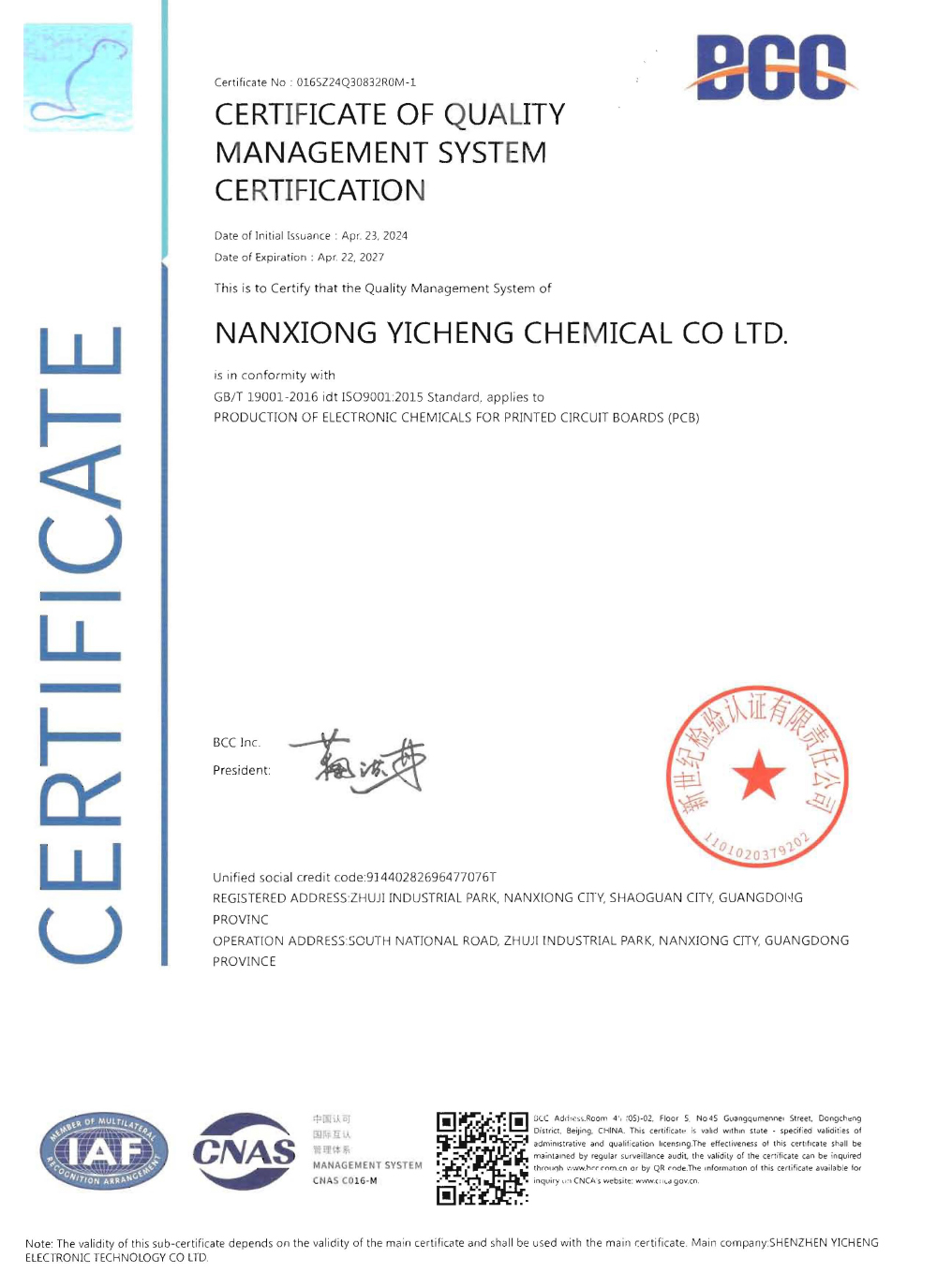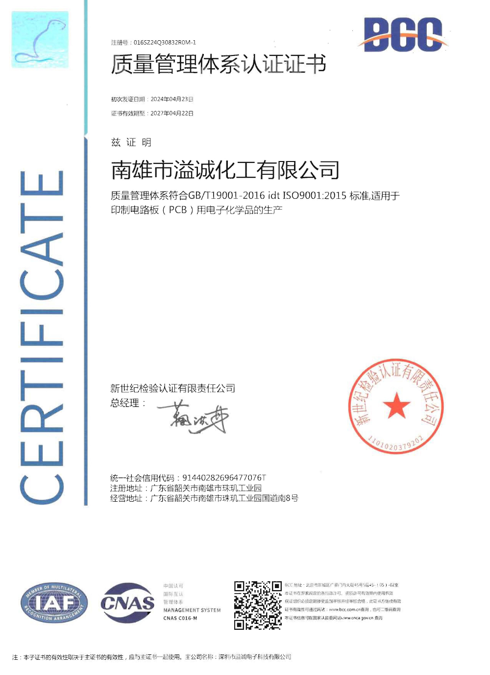 ISO体系证书